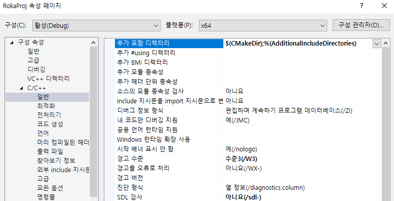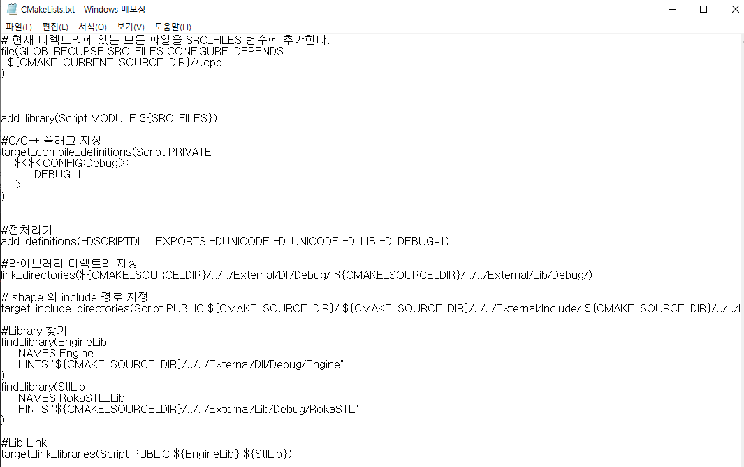 CMAKE 빌드의 경우 매크로를 등록시켜두지 않았기 때문에 해당 부분은 제외하고