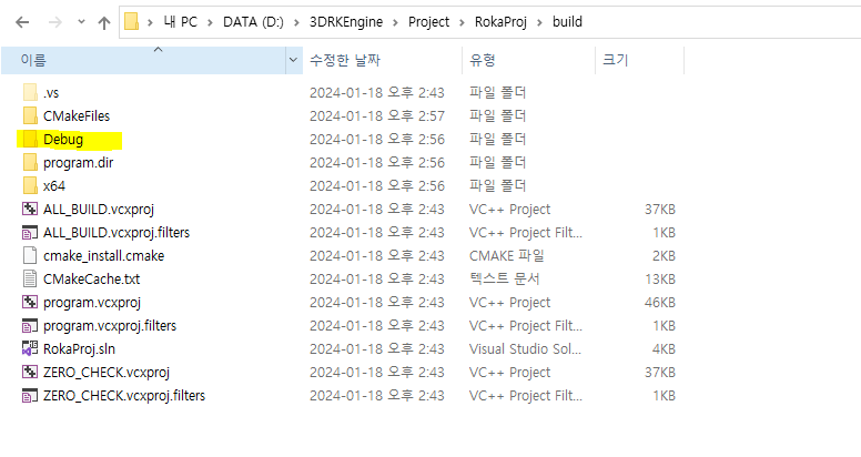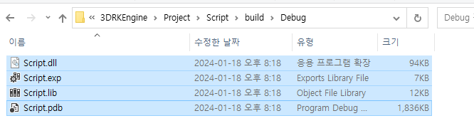 하지만 cmd 빌드를 하면 Debug 파일이 생기고 그 안에 출력되기 때문에 RKEngine/External/Dll/Debug/Script/Debug 가 되어버린다.