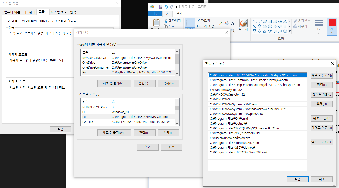 2.시스템 환경 변수 path 에 gnuwin\bin 경로를 넣어준다.