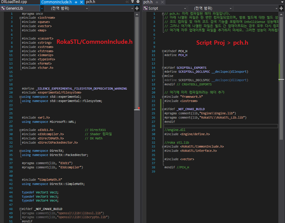 일반적인 라이브러리 예제가 아닌 내 코드에 적용하려고 하니까 오래걸렸다.(A Dll,B Dll, B에서 A lib 로드.)